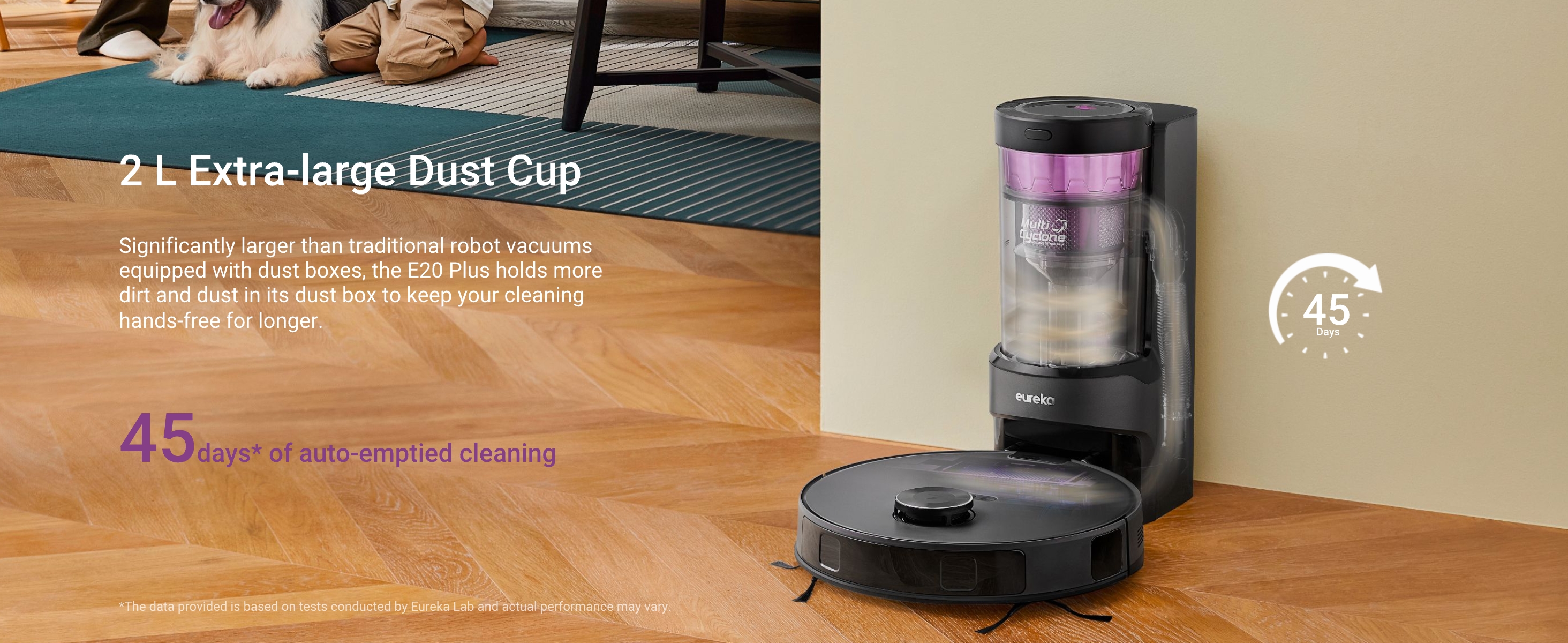 Eureka E20 Plus Robot Vacuum with Bagless Self Emptying Station, Robotic Vacuum and Mop Combo, 45-Day Capacity, Upgraded 8000Pa Suction and Anti Hair-Tangling Brush, LiDAR Navigation, App Control